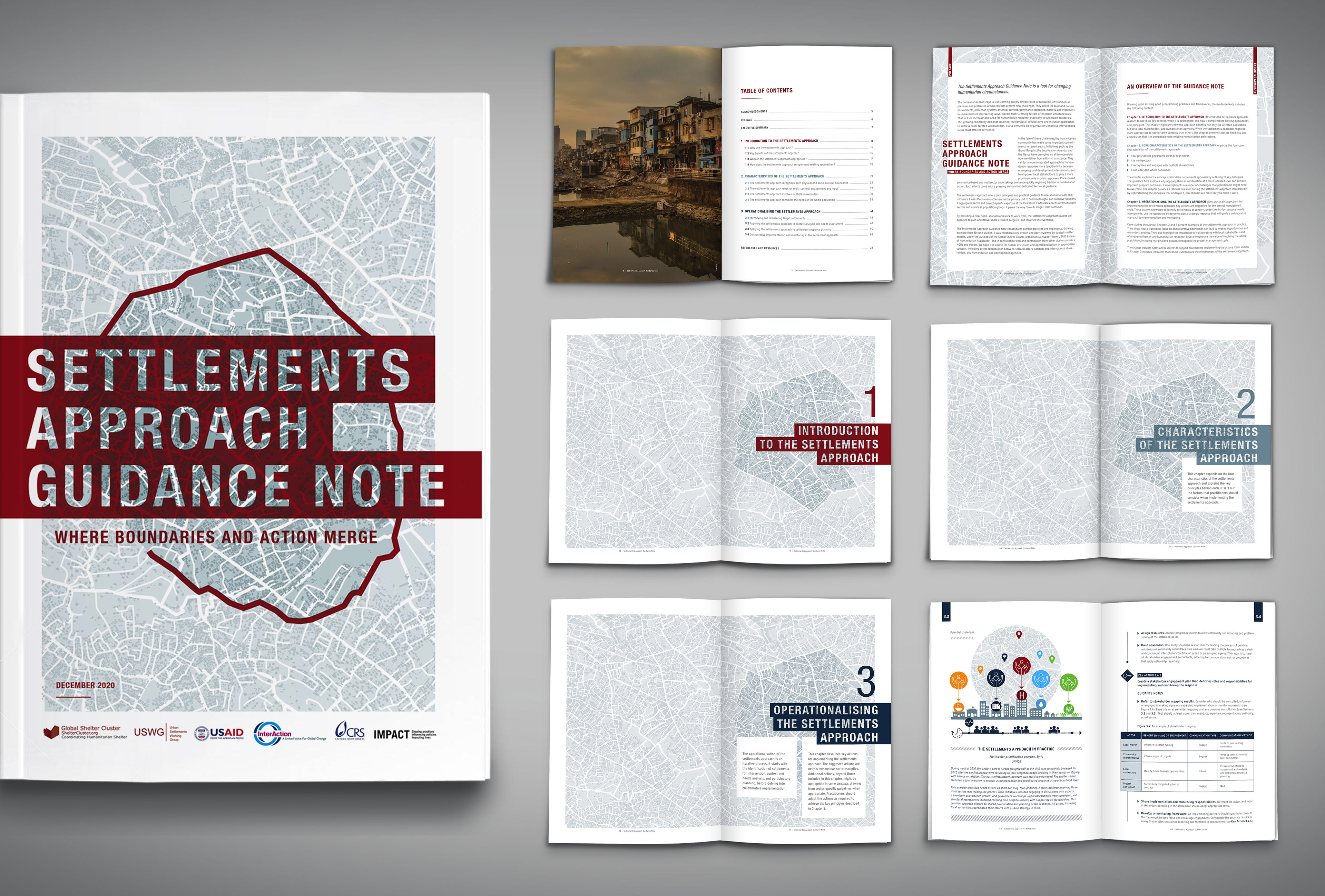 « Settlements Approach Guidance Note » et « Thematic Annex » – La Settlements Approach Guidance Note est un outil stratégique visant à transformer les modalités d’intervention humanitaire, tandis que le Thematic Annex propose des orientations pratiques pour intégrer les enjeux environnementaux dans l’approche par les établissements humains. Conception éditoriale et design de ces deux publications stratégiques complémentaires, réalisées en versions anglaise et française. "Settlements approach Guidance Note" and the "Thematic Annex" - The Settlements Approach Guidance Note is a tool for changing humanitarian circumstances. The Thematic Annex provides guidance on incorporating environmental factors into the Settlements Approach. Concept development and design of both interrelated strategic publications, produced in English and French versions.