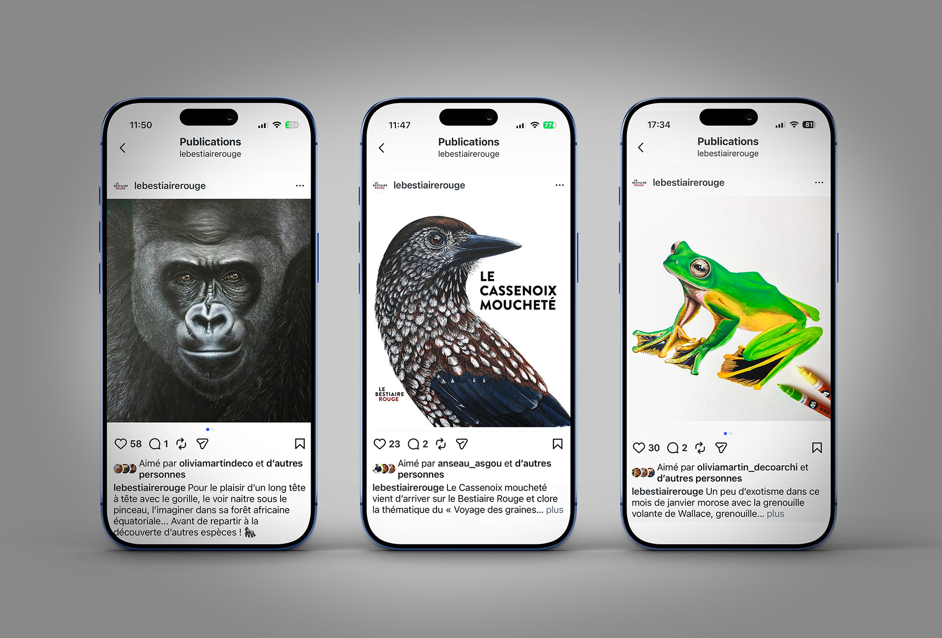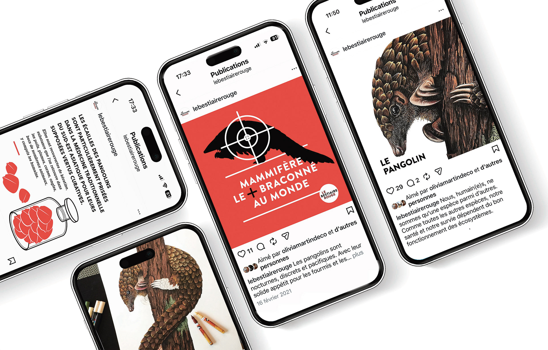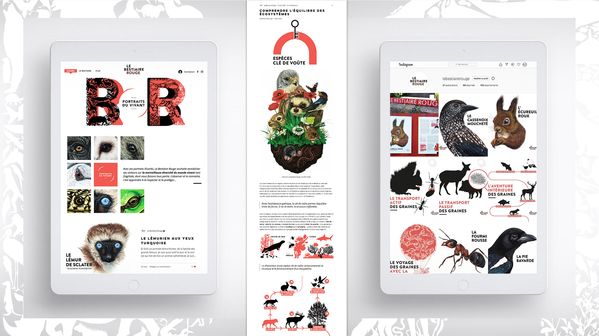 Le Bestiaire Rouge - Portraits du vivant Projet personnel à la croisée de l’illustration, de la recherche et de l’écriture, consacré aux espèces menacées. Déployé en ligne et en exposition, il prend la forme de portraits illustrés qui invitent à redécouvrir la richesse et la complexité du monde vivant. Chaque création s’appuie sur un travail documentaire approfondi, mêlant données scientifiques et narration sensible, afin de rendre visible une biodiversité fragilisée dont nous faisons partie. Observer, comprendre, raconter : une manière de retisser un lien avec le vivant, et d’apprendre à le respecter pour mieux le protéger. A personal project combining illustration, research, and writing around endangered species. Each portrait, presented online and in exhibitions, blends scientific accuracy with a sensitive interpretation to reveal the fragile beauty of life and invite awareness, respect, and protection. https://www.lebestiairerouge.com/ - https://www.instagram.com/lebestiairerouge/